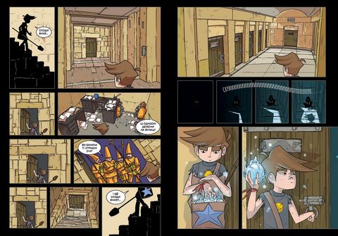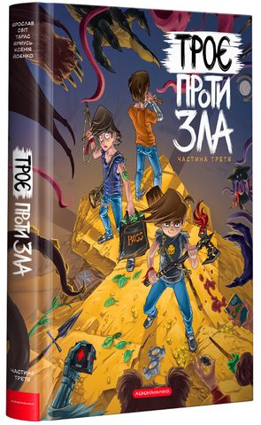 «Троє проти зла» — веселий український комікс про двох друзів — Антона і Ореста, які вирушили у казковий світ, щоб врятувати свого третього друга Романа. У першій та другій частині порятунок їм не вдався, тому ви тримаєте в руках третю частину квадрології.