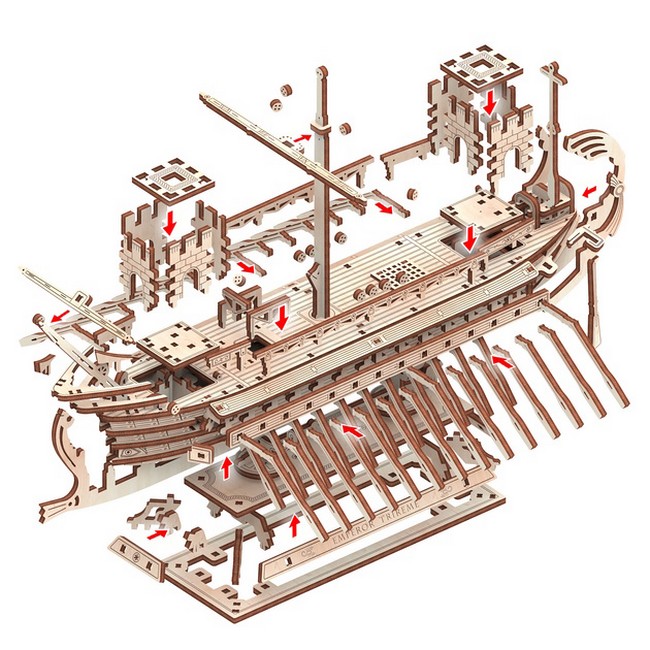 Конструктор "Імператорська Трирема 'Чорний Скорпіон'" від Mr. Playwood стане ідеальним вибором для тих, хто шукає цікаве заняття, поєднане з творчістю та механікою. Це відмінний подарунок для дітей та дорослих, які захоплюються моделями та історією мореплавства.