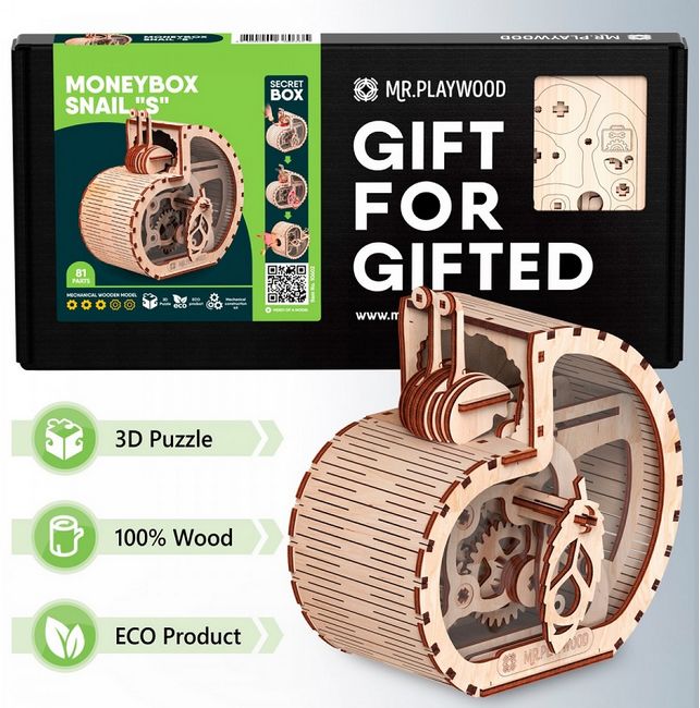 3D Пазл Mr.Playwood (Містер Плейвуд) Равлик-скарбничка неодмінно сподобається і дітям, і дорослим.