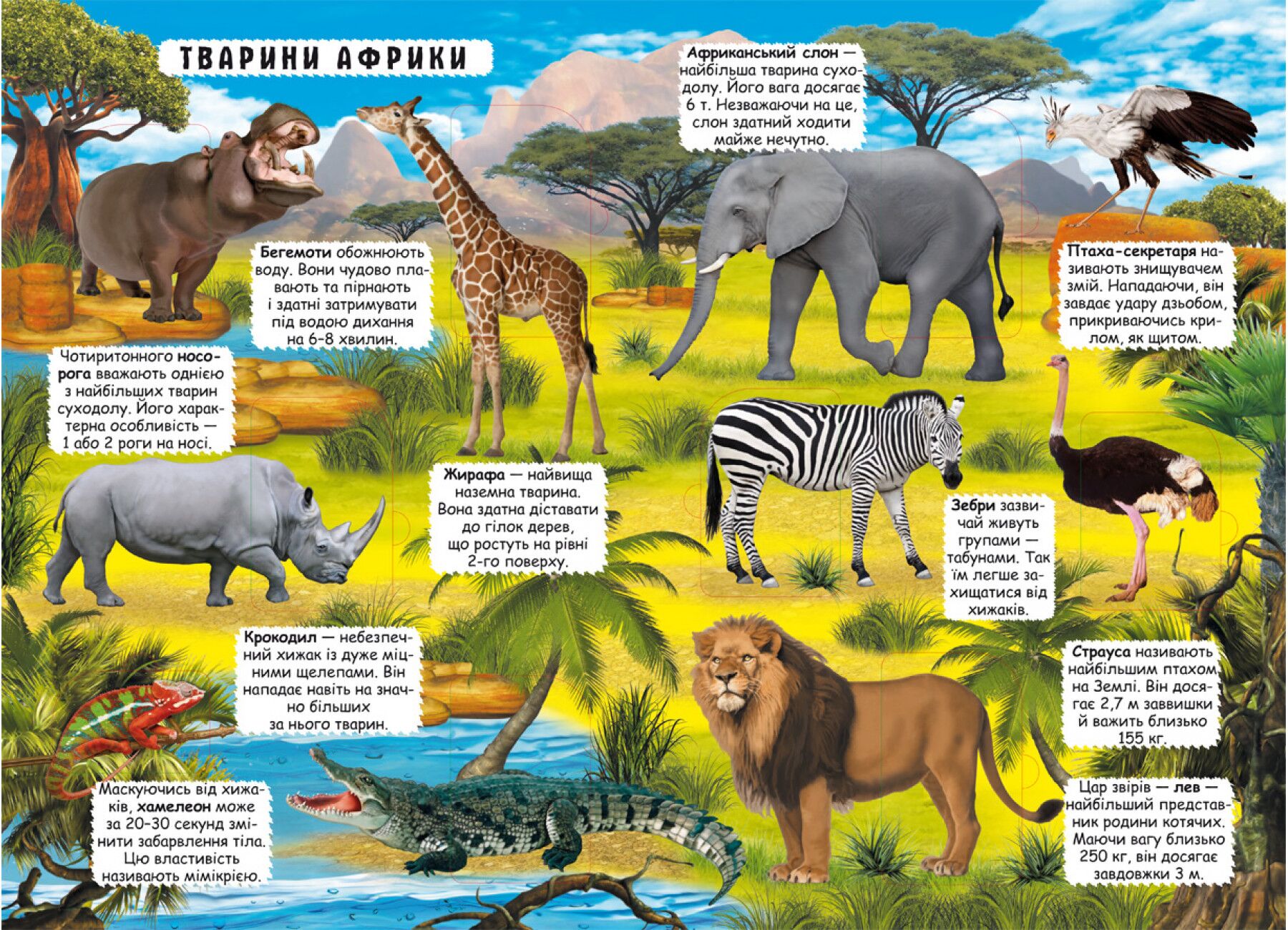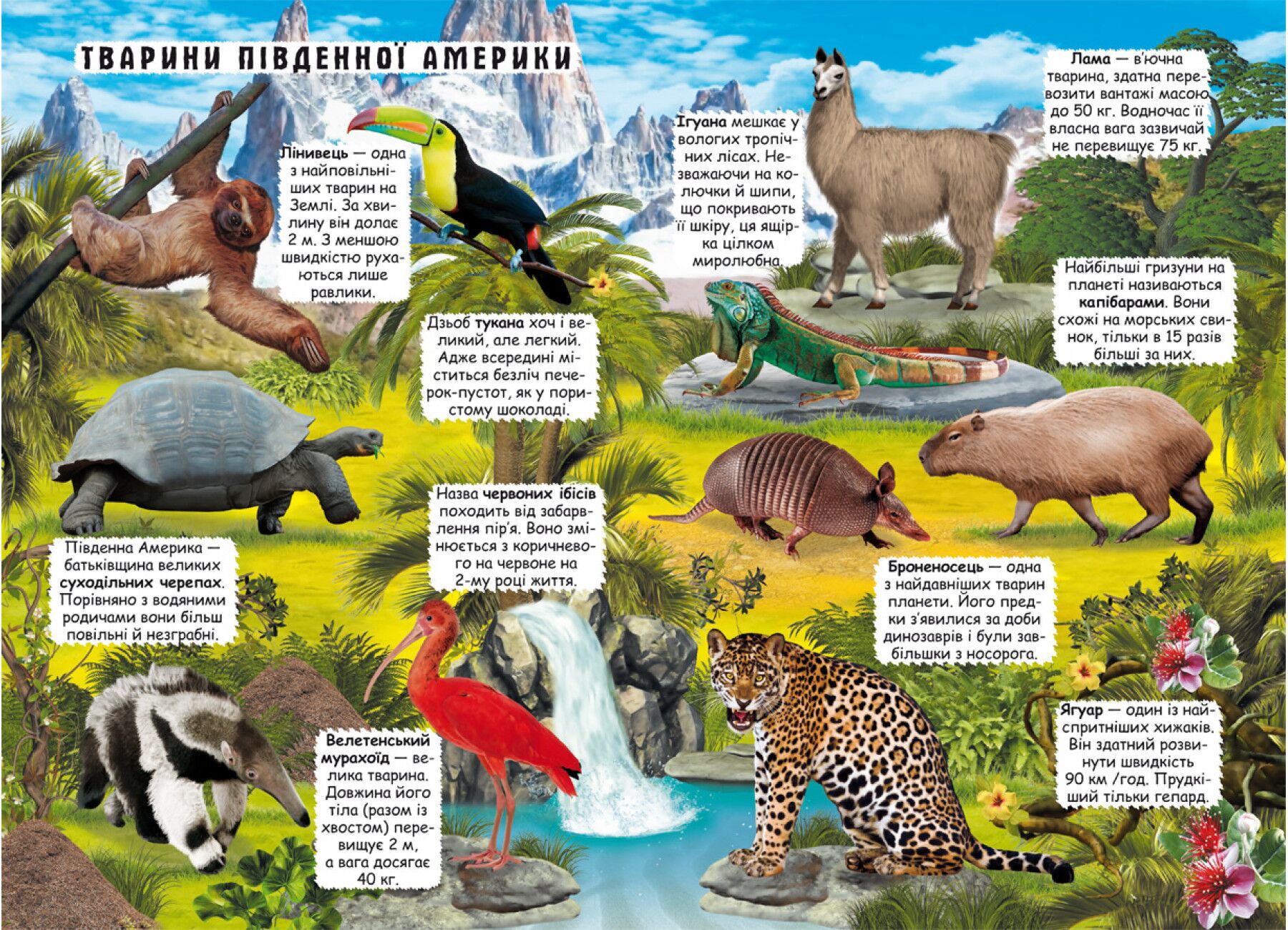 Нашу планету населяє безлiч дивовижних i прекрасних створiнь! Звiрi та птахи, комахи й риби, змiї та ящiрки — на сторiнках цiєї книжки на маленьких читачiв чекають зустрiчi з мешканцями всiх континентiв — вiд спекотних пустель Австралiї до снiжних рiвнин Євразiї. Наша пiзнавальна книжка допоможе малюкам у дослiдженнi тваринного свiту Землi, а чарiвнi стулки зроблять читання ще бiльш захоплюючим!