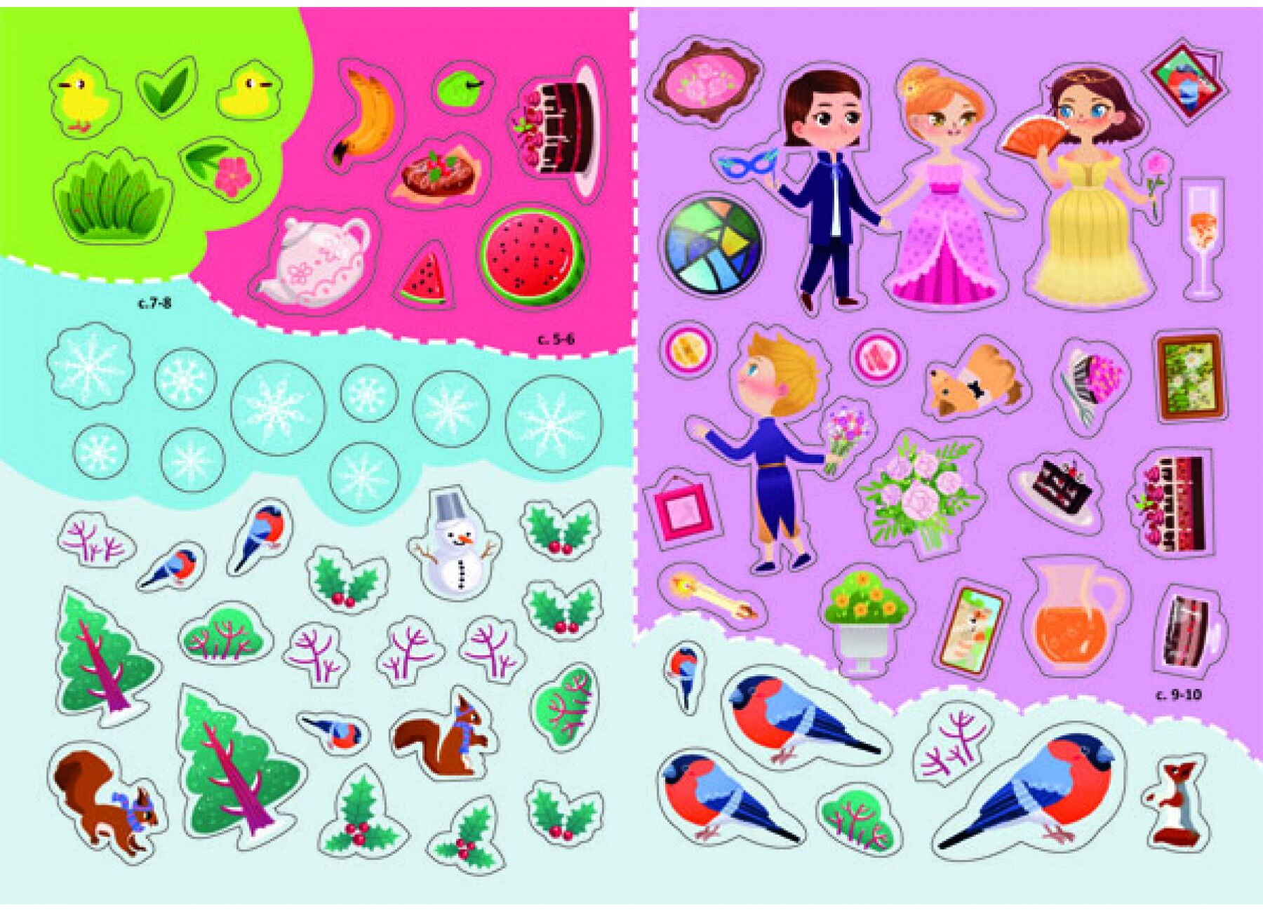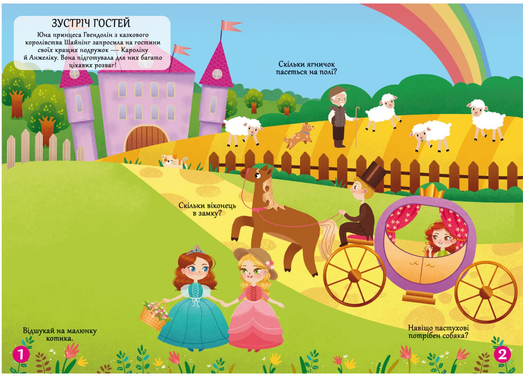 Кожен день принцеси гвендолін та ті подружок багатий на цікаві поді'і та пригоди. Хутчіш зазирни в книжку. Щоб разом з королівнами прогулятися зимовим лісом, побувати на балі-маскараді й покататися на єдинорогові! Фантазуй, вигадуючи власну історію про принцесу та ті подружок. Тобі стануть у пригоді понад 300 меганаліпок. Використовуй як підказку зазначені поруч з ними номери сторінок.
