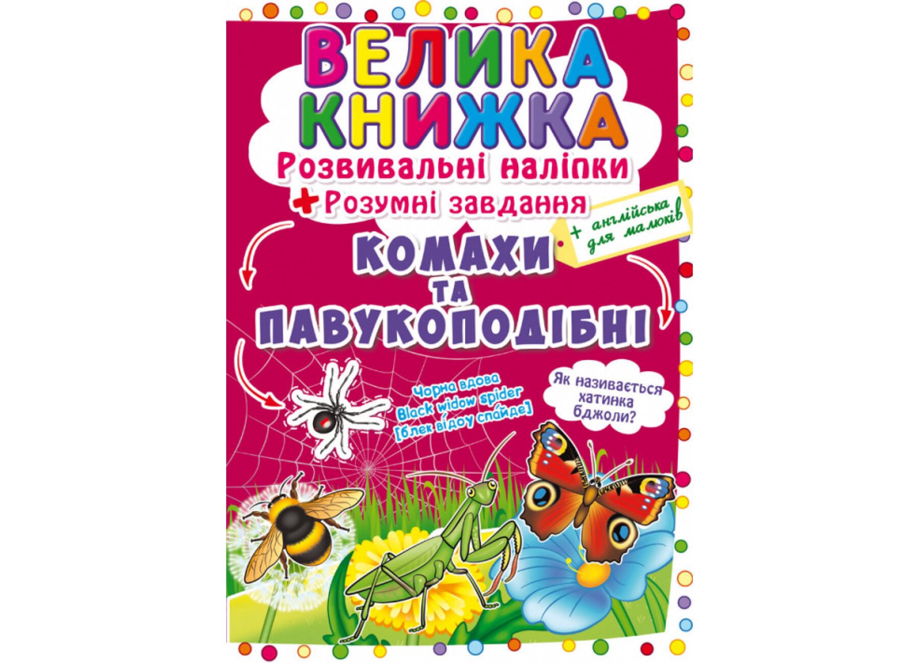 За допомогою цієї книжки ти познайомишся з найбільш незвичайними комахами та павукоподібними. Ти дізнаєшся багато нового про їхнє життя й почнеш вивчати англійську мову. Наклей усі наліпки на відповідні місця. Дізнавайся про нове, вивчай англійську та пізнавай навколишній світ разом із цією книжкою!