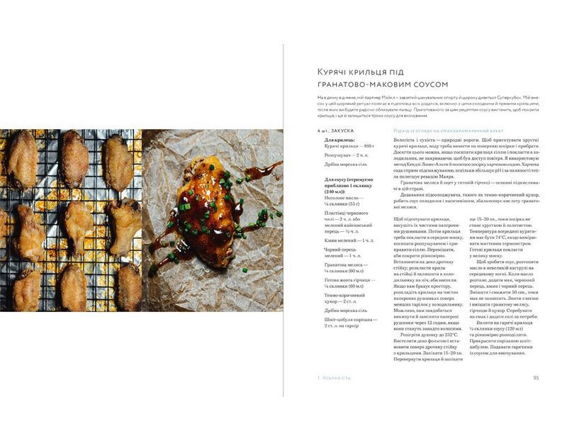 «Що ми називаємо “смачним”? Це поєднання елементів, яке формує єдиний цілісний досвід. Завдяки знанням, як інгредієнти поводяться й чому, і як вони впливають на смак, я покращив свою кухарську майстерність — тож ці знання навчать і вас готувати краще. У цій книзі ми розглянемо окремо кожен елемент — емоції, пам’ять, вигляд, звук, відчуття в ротовій порожнині (текстуру), аромат і смак, — щоб зрозуміти роль, яку він відіграє у повсякденній кулінарії. “Формула смаку” допоможе вам почуватися впевненіше на кухні, тому що, врешті-решт, ви дізнаєтеся, як працює смакоароматичний букет, і матимете з цього користь»- ISBN9786178025113