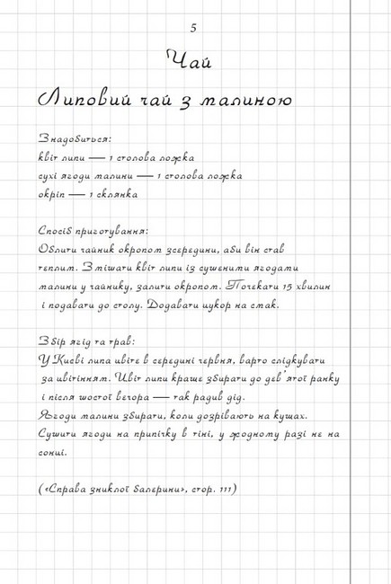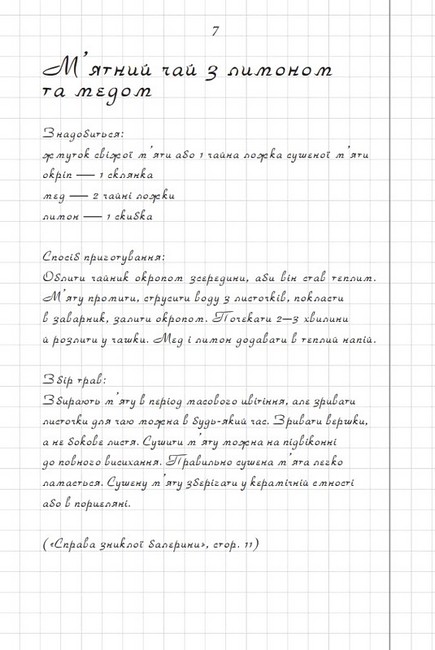 Припускаємо, що в такому вигляді збірка рецептів Тараса Адамовича була передана секретарці слідчого Мірі Томашевич під час чаювання у будинку слідчого на київському Подолі, після розкриття «Справи одеських шпигунок». До книги увійшли найкращі рецепти варення та конфітюрів, страв у печі; правила збору трав та листя для чаю, а також кілька вивіданих старим слідчим рецептів у київських та одеських кухарів відомих кав’ярень та ресторацій.