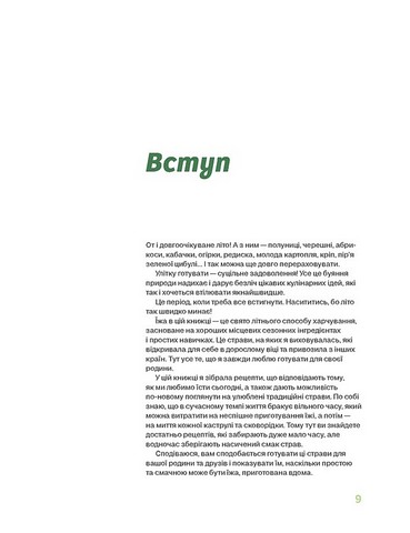 Готування влітку особливе: швидке, яскраве та дає можливість наповнити страву різноманітними смаками з найпростіших продуктів. Саме такі рецепти зібрала в цій книжці кулінарна блогерка Ольга Рябенко. Це страви, які ми знаємо з дитинства, але приготовані дещо по-іншому, рецепти, привезені з інших країн, страви на вогні й рецепти для приготування разом з дітьми. Паста із зеленим соусом, хачапурі на шампурах, салат із хрусткими баклажанами, запіканка з морквою та ягідний мармелад.