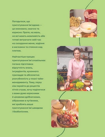 \nУ цій книжці ви знайдете багато рецептів, які забирають дуже мало часу, а після готування не потрібно мити гори посуду. При цьому результати вражають барвистістю і смаками. Усі страви складаються з локальних сезонних інгредієнтів і потребують мінімальних кулінарних навичок.