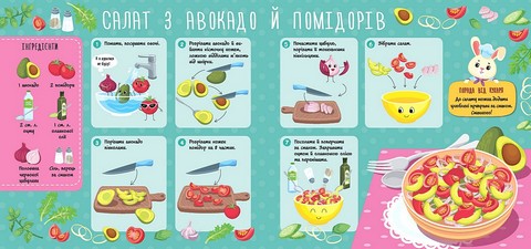 Книжка «Овочеві салати» із серії «Рецепти для малюків» допоможе дитині навчитися готувати перші смачні вітамінні салати зі свіжих овочів. У цьому виданні з урахуванням вікових можливостей дитини підібрано рецепти смачних і корисних страв: перелік інгредієнтів, покрокова інструкція з приготування та дбайливі поради від шеф-кухаря. Стимулом для роботи з рецептами стануть наліпки-медалі, а розважальним бонусом — наліпки смаколиків. Книжка буде гарним подарунком і допоможе організувати цікаве й корисне дозвілля для дитини.