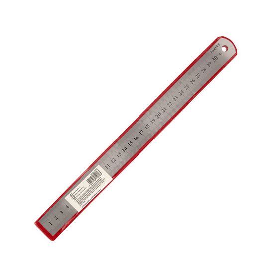 Двостороння лінійка Axent 7730-A, 30 см. Виготовлена з нержавіючої сталі, міцна, стійка до деформації. З однієї сторони лінійки знаходяться дві сантиметрові шкали, а з другої - сантиметрова та дюймова. Лінійка оснащена чохлом з PVC-плівки.