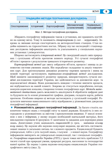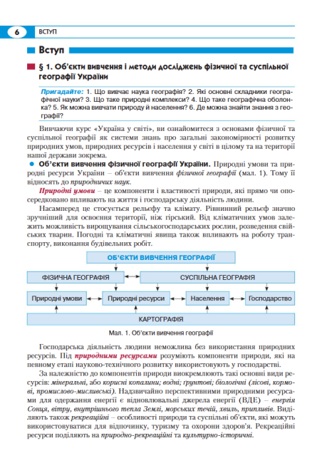 Всі компоненти підручника збалансовані щодо основного тексту та ілюстрацій: малюнків, схем, карт, таблиць та слайдів, що робить навчання більш наочним і зрозумілим для учнів.