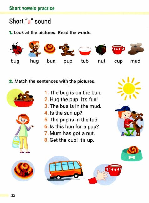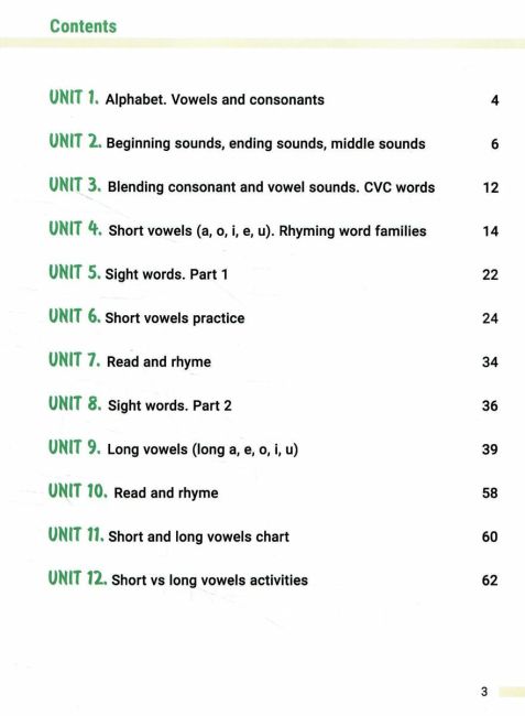 Матеріал подано за принципом від простого до складного: спочатку засвоюються правила читання на прикладі слів, що римуються, далі йде робота з реченнями, а завершується невеличкими авторськими римами та текстами. Особливістю навчання читання англійською мовою є те, що деякі слова читаються не за правилами (sight words), а отже, потрібно задіювати зорову пам’ять. І це також враховано в посібнику.