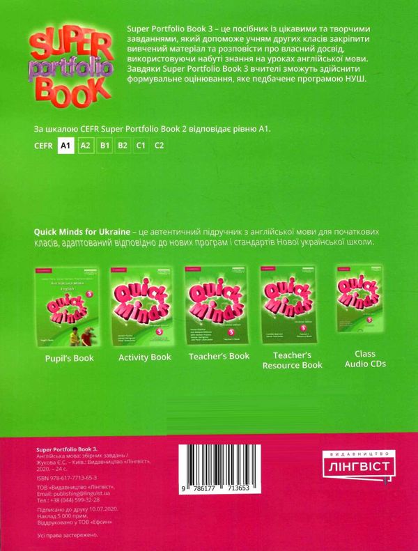 Super Portfolio Book – це посібник до підручника Quick Minds 3 із цікавими та творчими завданнями для другого класу з англійської мови, який допоможе учням закріпити вивчений матеріал та розповісти про власний досвід, використовуючи набуті знання на уроках англійської мови. Завдяки Super Portfolio Book вчителі зможуть здійснити формувальне оцінювання, яке передбачене програмою НУШ.