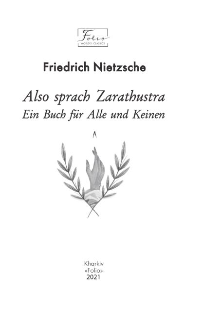 Also sprach Zarathustra. Ein Buch fur Alle und Keinen / Так мовив Заратустра Nietzsche Friedrich Фоліо 87462