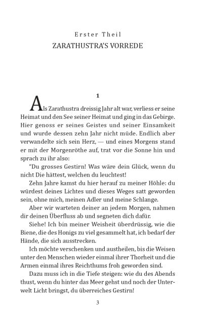 «Also sprach Zarathustra» — ist das Werk des deutschen Philosophen Friedrich Nietzsche (1844—1900). Es erzählt vom Schicksal und den Lehren eines wandernden Philosophen, der sich Zarathustra nennt, den Namen des Propheten einer der ältesten Religionen der Welt, basierend auf der Lehre von der freien Wahl des Menschen zwischen Gut und Böse.