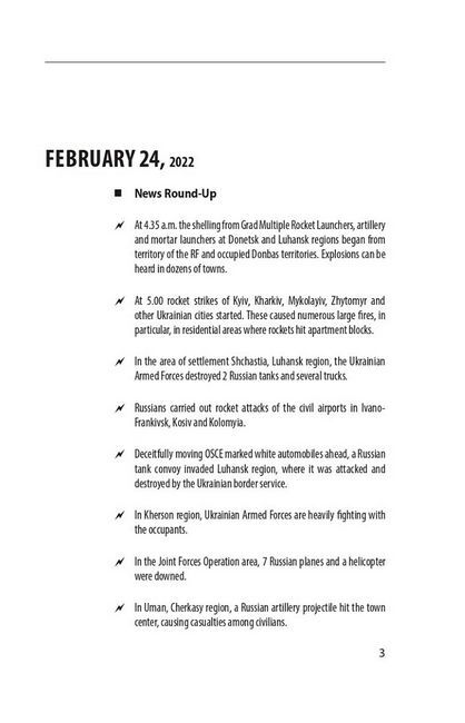 The documentary chronicle of Russia’s full-scale invasion into Ukraine reminds the reader of the tragic and heroic events of the first six months of the hot phase of the war, from February 24 to August 24, 2022. The enemy planned а “flash war”, killing civilians and destroying cities, but Ukrainians heroically resisted.