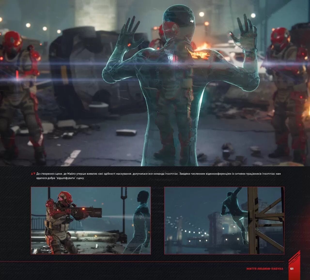 У книзі «Marvel’s Spider-Man: Miles Morales — Мистецтво гри» розповідається про процес створення цієї гри, на яку так очікували фанати. Цей чудовий артбук у твердій палітурці містить дивовижні концептарти та сцени з гри, які створила талановита команда розробників Insomniac Games під час спільної з Marvel роботи над нею. Книга демонструє прекрасну деталізацію персонажів, локацій, технологій, ґаджетів, павучих костюмів та багато іншого, а також містить ексклюзивні коментарі від художників та розробників, які працювали над грою.