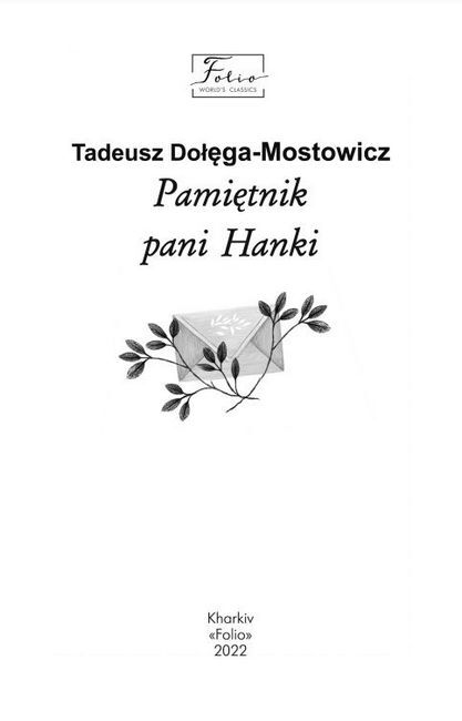 Pamietnik pani Hanki / Щоденник пані Ганки Тадеуш Доленга-Мостович, Dolega-Mostowicz T. Фоліо 87193
