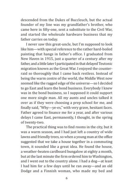Френсіс Скотт Фіцджеральд (1896–1940) — американський письменник, автор творів про покоління «епохи джазу». У романі «Великий Гетсбі» змальовано Америку 1920-х років. Головний персонаж — людина, яка створила себе за рецептами американської моралі, яка заможна, але надзвичайно самотня.