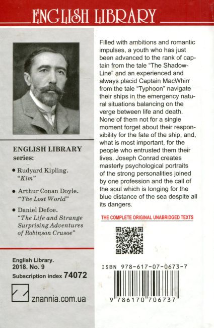 Видавництво "Знання" надає можливість насолодитися цими захоплюючими творами в якісному виданні, яке відтворює всю глибину та напруженість пригод, які описує Йозеф Конрад.