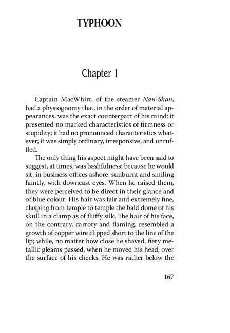 "Тайфун" — це роман, який описує жахливий таїнственний тайфун, що вражає тихоокеанський корабель. Під час боротьби з небезпекою екіпаж проявляє героїзм і солідарність у відчайдушній боротьбі за виживання.