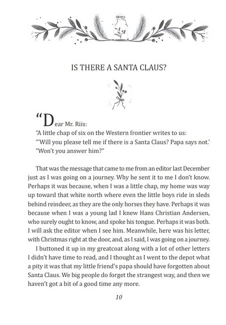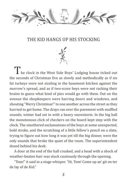 The Folio Book of Mysterious Christmas Stories includes works by Jacob A. Riis (1849—1914), William John Locke (1863—1930), Charles Dickens (1812—1870), which are united by a common theme. These pages depict elements of traditional Christmas: snow-covered roofs, shiny shop windows, miracles, magic, benevolence and charity.