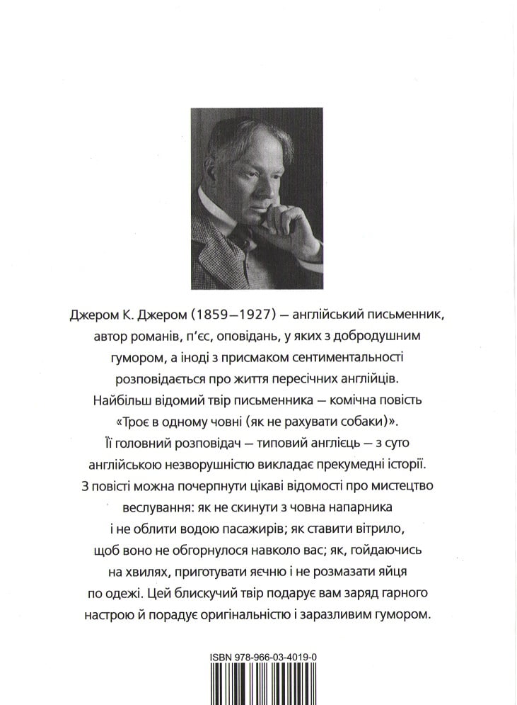 Гумористична повість Джерома Клапки Джерома, написана за спогадами про весільну подорож по Темзі, що відбулася в серпні 1889 року. Твір приніс письменнику світову славу, вплинув на багатьох гумористів і сатириків у всьому світі й донині залишається неперевершеним зразком англійського гумору. Головна перевага книги — її правдивість. У 1900 р., з огляду на успіх цієї повісті, автор написав її продовження «Троє на бумелі», цей твір користувався не меншою популярністю, ніж перший.