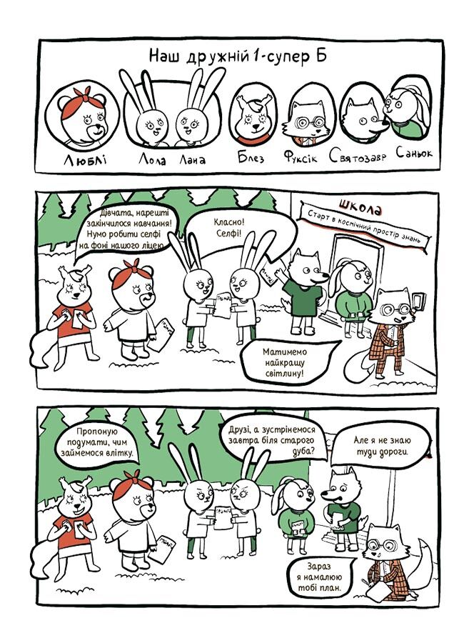 Дзвенить останній дзвоник! І у лісовій школі, так само як і у всіх, розпочинаються літні канікули. Ох скільки пригод чекає попереду! Першокласники-звірятка дуже хочуть стати зірками інтернету, тому шукають різні цікаві ідеї для своїх відео-сюжетів та фото. Але на шляху у них трапляються завдання, виконати які можна, якщо пригадати вивчене у першому класі. І їм потрібна допомога, щоб вірно порахувати, прочитати, з’єднати, відшукати.