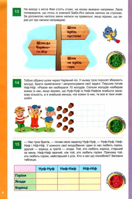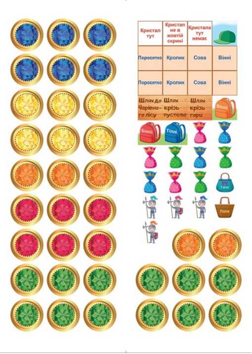 За кожне правильно виконане завдання мешканці країни дають відповідну наліпку, яку слід розмістити в таблицю досягнень. Після виконання всіх задач дитина зможе за підрахунком набраних нею балів оцінити свій рівень майстерності від «початківця» до «профі»