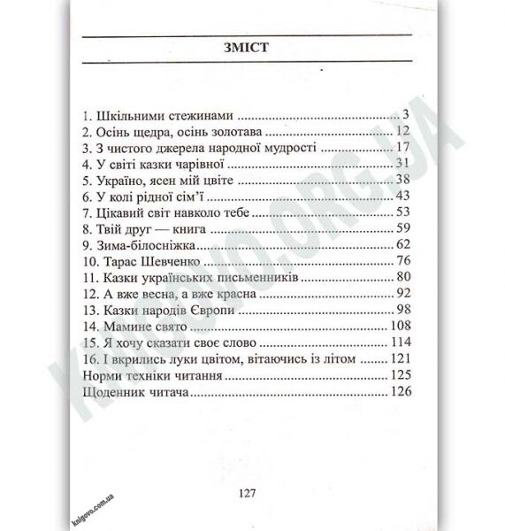 У збiрник увійшли вірші та оповідання українських письменникiв про нашу Батьківщину, її природу та людей, цікаві казки вітчизняних і зарубіжних авторів, казки народів світу, кращі зразки дитячого фольклору та ін. На останніх сторінках книжки подано норми техніки читання та щоденник читача.