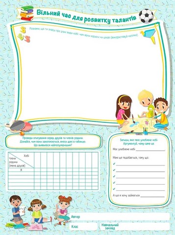 Як приємне та корисне доповнення — постер із проєктними роботами «Корисні звички — міцне здоров'я» та «Вільний час для розвитку талантів», які можна буде презентувати однокласникам. Також у книзі є яскраві наліпки для проєктів і забавки.