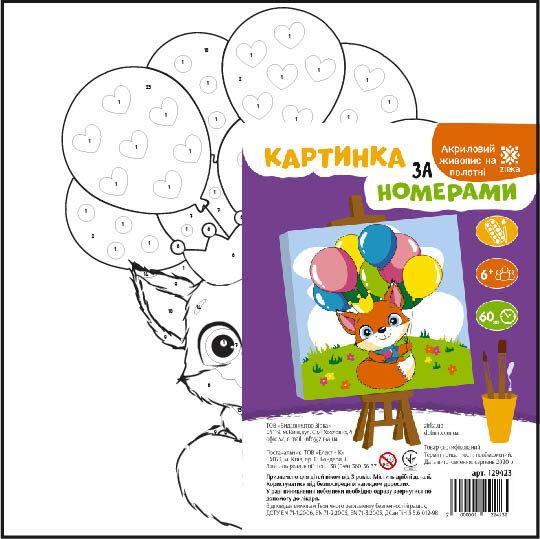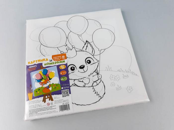 Картина за номерами Лисичка Зірка. БОНУС мобільний додаток на телефон. Картинка по номерам 20х20 см.