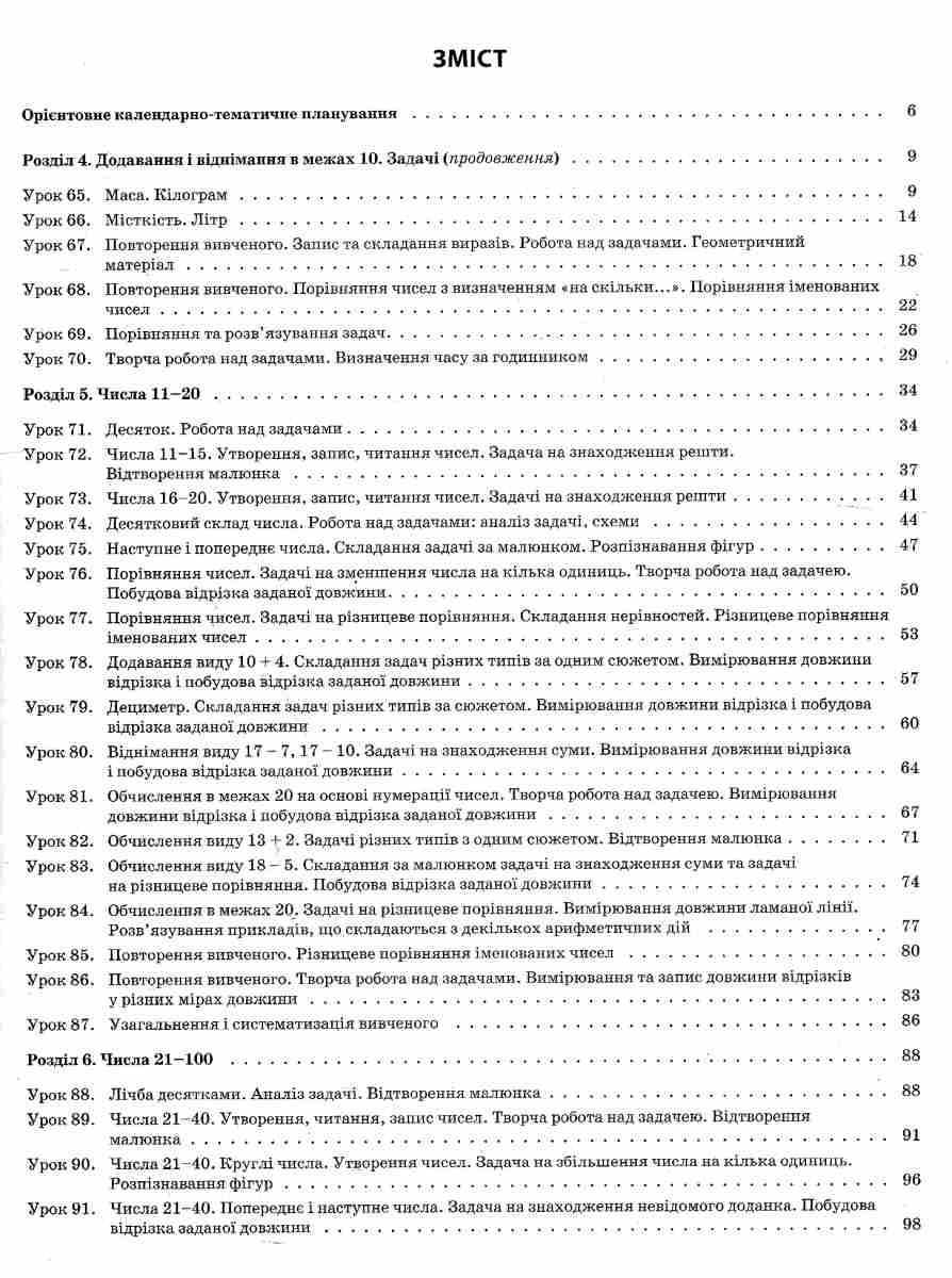 Розподіл годин і тематика уроків відповідають змісту підручника Н. П. Листопад Математика : підруч. для 1 кл. закладів загальної середньої освіти Оріон 2018.