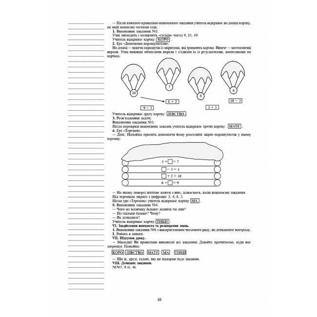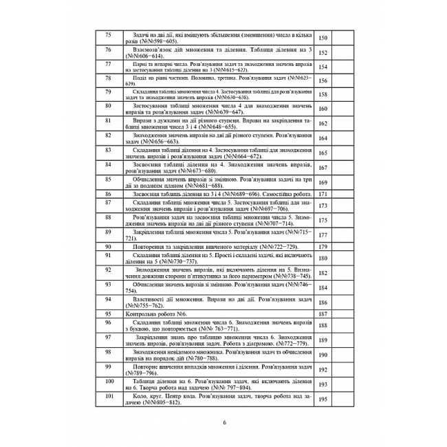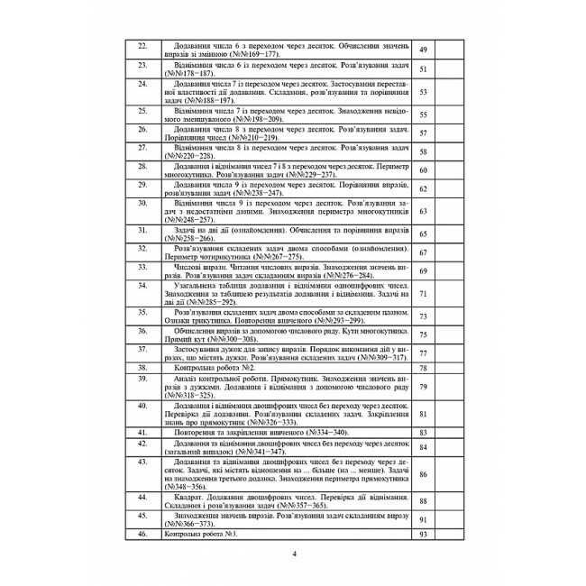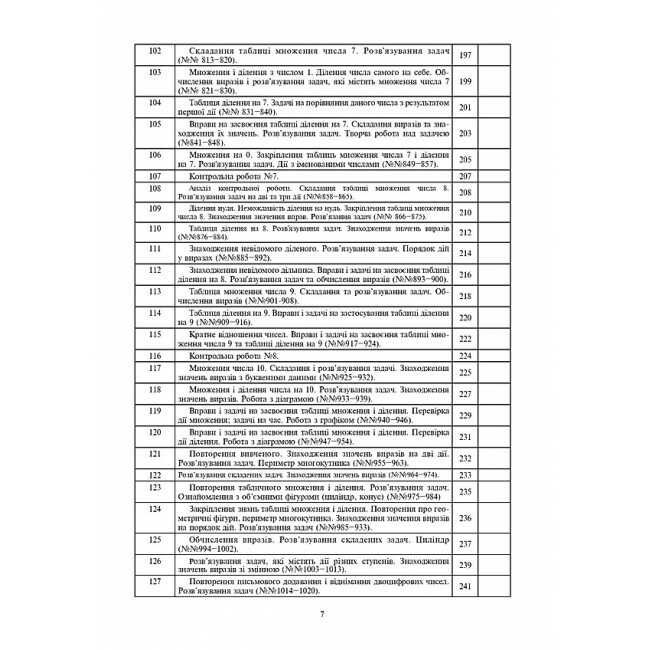 Пропонуються картки для опитування, цікаві завдання для усного розрахунку, зразки бесід під час вивчення нового матеріалу, завдання ігрового і творчого характеру, різноманітні прийоми роботи над задачами, вправи логічного характеру тощо.