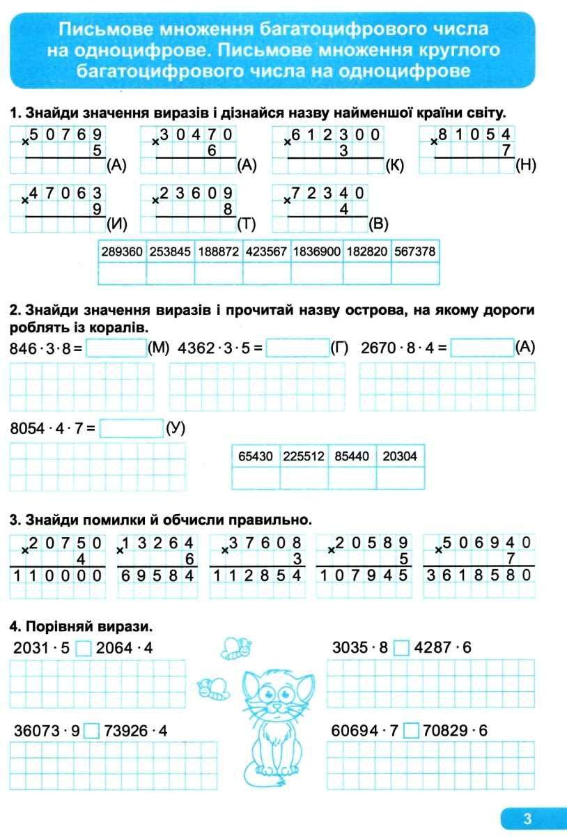 У практикумі представлено багато завдань, які допоможуть учням закріпити знання з множення та ділення, а також вирішувати задачі на їх застосування. Завдання з даного практикуму розраховані на різний рівень складності, що дозволить залучити до активної роботи кожного учня, незалежно від його рівня підготовки.