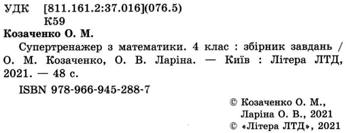 Супертренажер з математики 4 клас НУШ із наліпками Козаченко О. Літера
