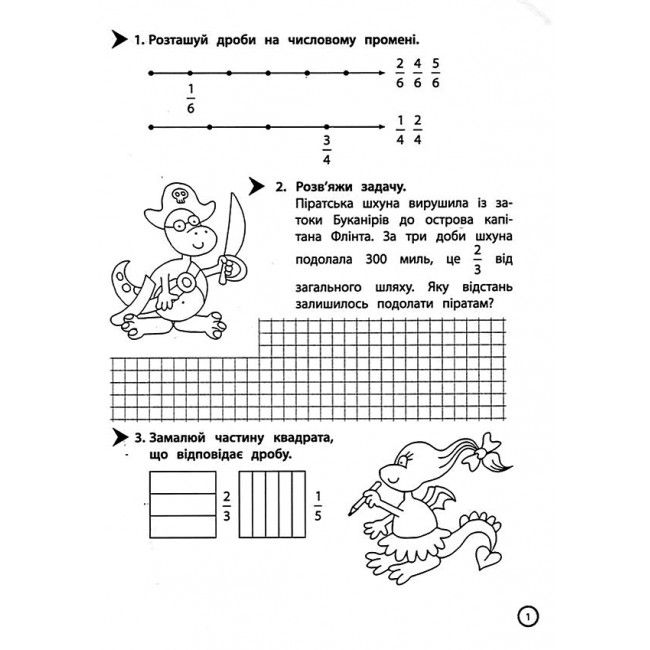 Завдання тренажера допоможуть дитині зробити важливий крок до практичного застосування отриманих знань. Тренажер Математика Дії з дробами 4 клас АССА. Як відобразити дробове число у графічному вигляді, обчислити та порівняти вартість, вагу, чи виміряти об’єм? Діти навчаться робити це автоматично, якщо запропонувати їм цікаві та яскраві вправи тренажера Дії з дробами.