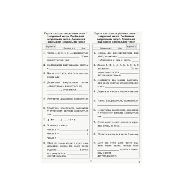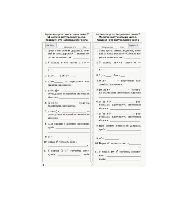 Посібник відповідає вимогам нової програми з математики для 5 класу і призначений для організації поточного, тематичного і підсумкового контролю навчальних досягнень учнів з математики. Для організації поточного контролю за кожною темою, що вивчається, запропоновано декілька видів перевірочних робіт: контроль теоретичних знань — перевіряється рівень засвоєння теоретичного матеріалу; практичний тренінг — контролюється вміння застосовувати набуті знання на практиці, а також володіння навичками читати й аналізувати матеріал, поданий графічно; самостійна робота —відстежується рівень засвоєння теми, що вивчається. Кожну роботу запропоновано у двох варіантах. Для організації тематичного і підсумкового контролю подано контрольні роботи, за допомогою яких перевіряється рівень засвоєння учнями навчального матеріалу за кожною темою. Усі роботи наведено в чотирьох варіантах і містять тестові завдання з вибором однієї правильної відповіді та завдання відкритої форми. Завдання самостійних і контрольних робіт диференційовані за рівнями навчальних досягнень учнів. Складовою комплекту є інтерактивні завдання, розміщені на сайті http://interactive.ranok.com.ua, які допоможуть учням підготуватися до контрольних робіт. Призначено для учнів 5 класу загальноосвітніх навчальних закладів і вчителів математики.