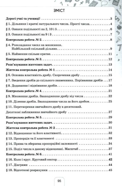 Матеріали посібника відповідають модельній навчальній програмі з математики для 6 класу ЗЗСО С. О. Скворцової і Н. А. Тарасенкової та підручнику з математики для 6 класів НУШ Н. А. Тарасенкової, І. М. Богатирьової, О. М. Коломієць, 3. О. Сердюк, Ю. В. Рудніцької.