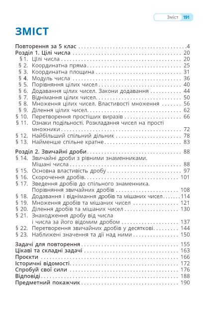 Перша частина підручнику з математики, призначеного для учнів 6 класу ЗЗСО.