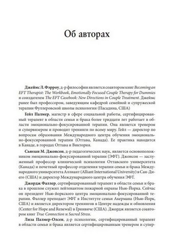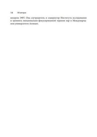 ЛИЗА ПАЛМЕР-ОЛСЕН, д-р психологии, сертифицированный терапевт в области семьи и брака, вот уже более пятнадцати лет является сертифицированным тренером и супервайзером ЭФТ. Она соучредитель и содиректор Института исследования и тренинга эмоционально-фокусированной терапии пар в Международном университете Аллиант.