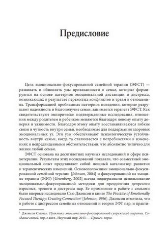 Книга представляет собой полное учебное пособие по применению эффективных принципов эмоционально-фокусированной терапии (ЭФТ) для преодоления трудностей в жизни семьи. Книга знакомит специалистов с основами теории и формирует концептуализацию ими семейной динамики. В ней рассматривается широкий спектр проблем и анализируются различные типы семей. В книге приводятся результаты последних научных исследований, расшифровки клинических сессий и конкретные случаи из практики.