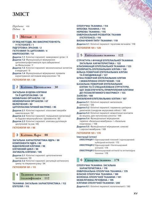 - Оновлений і доповнений матеріал розділів, присвячених міжклітинним контактам, синтезу еластичних волокон, питанням мінералізації кісткової тканини тощо, дає змогу зрозуміти принципи молекулярної та клітинної біології на основі сучасної, клінічно орієнтованої інформації.