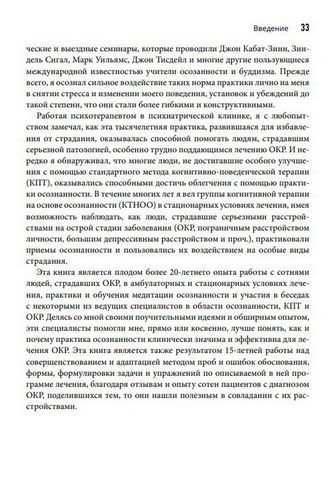 В этой книге описываются особенности обсессивно-компульсивного расстройства (ОКР) и представлены в удобной форме подробные инструкции для реализации каждого из 11 сеансов терапии по рассматриваемой в ней программе лечения ОКР методом когнитивной терапии на основе осознанности (КТНОО), полное описание воспроизводимых и направляемых практических упражнений, настоящих диалогов участников с инструктором, а также раздаточные информационные материалы для пациентов, проходящих курс лечения по данной программе. Эта книга служит незаменимым руководством по проведению курса лечения ОКР методом КТНОО для тех читателей, которые хотели бы освоить этот метод терапии в своей клинической практике.