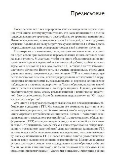 В книге содержится подробное описание оценки и пошагового лечения ГТР (в том числе множество примеров диалога терапевта и клиента), а также приведены данные об эффективности лечения в индивидуальной и групповой терапии. В конце книги описаны некоторые факторы, усложняющие лечение, и способы устранения этих факторов терапевтом.