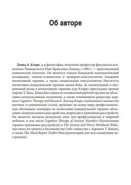 В данном авторитетном руководстве отражены последние знания об обсессивно-компульсивном расстройстве (ОКР) и его терапии. Выдающийся клиницист-исследователь Дэвид А. Кларк описывает, "что", "почему" и "как" дает КПТ для широкого спектра обсессий и компульсий.