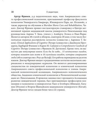 Артур Фримен, д-р педагогических наук, член Американского совета профессиональной психологии, приглашенный профессор факультета психологии Университета Говернорс, Юниверсити-Парк, шт. Иллинойс, а также директор по обучению в Sheridan Shores Care and Rehabilitation, Чикаго. Артур Фримен прошел постдокторскую стажировку в Центре когнитивной терапии медицинской школы университета Пенсильвании под руководством Аарона Т. Бека, учился у Альберта Эллиса в Нью-Йорке. Написал свыше 40 статей и обзоров, является соавтором 20 книг, в том числе Когнитивная терапия расстройств личности (совместно с Аароном Т. Беком). Его работы переведены на десяток языков. Артур Фримен входит в редакционные коллегии нескольких американских и международных журналов.