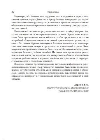 В данном практическом руководстве авторы показывают, как когнитивно-поведенческие стратегии могут помочь людям пережить периоды сильного стресса и развить необходимые навыки в будущем. Ведущие специалисты описывают эффективные, краткие подходы к управлению различными типами кризисов, связанных с конкретными психологическими проблемами, такими как паническое расстройство, суицидальность, депрессия и расстройства личности. Также они учат, как пройти через кризис на фоне проблем со здоровьем, в семье, экономических и ситуационных трудностей, крупномасштабных травмирующих событий. Наглядные примеры иллюстрируют, как выглядят интервенции в действии и как их применить к потребностям отдельных клиентов.