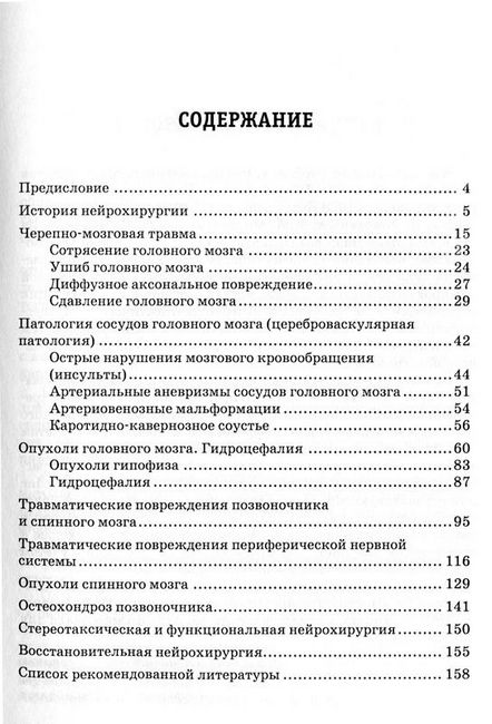 В учебнике в соответствии с новой программой изложены вопросы черепно-мозговой травмы, патологии сосудов головного мозга. Особенное внимание уделено описанию опухолей головного и спинного мозга, гидроцефалии, остеохондроза позвоночника. Подробно рассмотрены виды и методы лечения травматических повреждений позвоночника и спинного мозга. Широко представлена функциональная и восстановительная нейрохирургия.