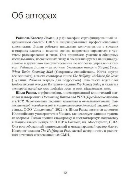 Эта книга написана для подростков, чтобы помочь им управлять своими эмоциями после причиненного насилия. Она предназначена тем, кому сложно справиться со страхом, беспокойством, тревогой или отчаянием, однако она не заменит профессионального психотерапевта. В случае, если невозможно справиться с наплывом отрицательных эмоций самостоятельно, необходимо обратиться к специалисту.