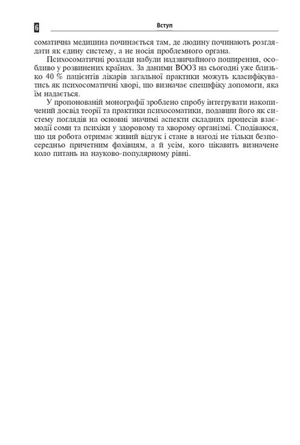 Пропонована книга покликана допомогти масовому читачу і спеціалістам з охорони здоров’я систематизувати знання про сучасний стан психосоматичної патології, її історію та перспективи.