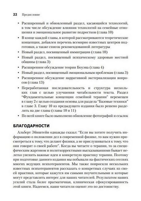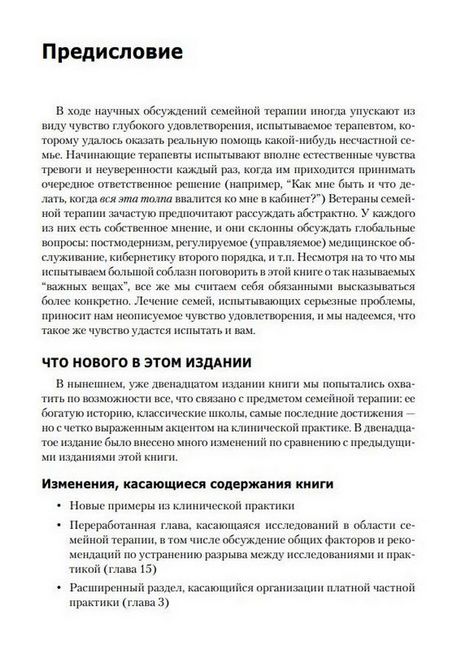 Эта книга может служить идеальной "дорожной картой" для нынешних и будущих клиницистов, которые раздумывают над выбором дальнейшей специализации и рассматривают в качестве одного из вариантов работу с семьями. Книга содержит описание базовых принципов и техник разных моделей семейной терапии, которые проиллюстрированы примерами из клинической практики, соединяющими теорию с жизнью. В настоящем, уже двенадцатом издании отражены самые последние достижения семейной терапии - в том числе и в ее социокультурном контексте, в котором семейные терапевты выполняют свою ответственную миссию.
